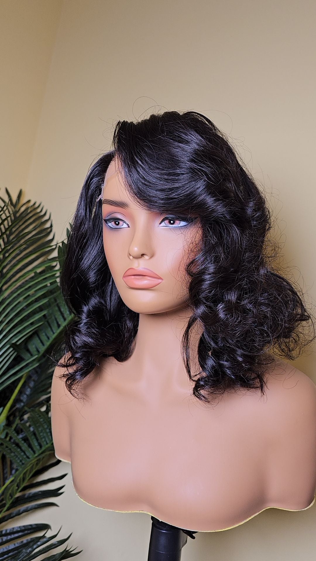 This cutie is a 12 inch, 5x5 HD lace closure Bob with added curls. She's ready to wear and ready to ship.
